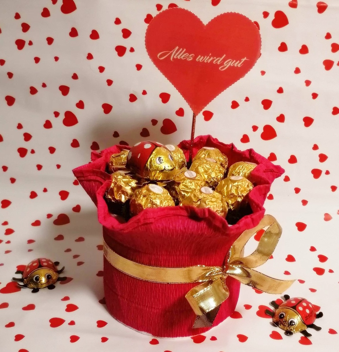 Suchen Sie immer noch das passende Geschenk ?An einen Blumenstrauß hatten Sie eigentlich nicht gedacht?Diese schöne schmale Baum ist ein echter Blickfang,ingefasst mit einer roten Manschette,als schmückende Dekoration sehr beliebt.Zum vernaschen eigentlich viel zu schade.Die Passende Geschenkidee für jeden Anlass.