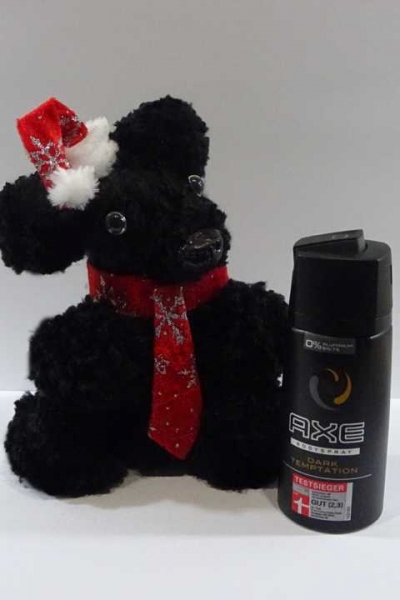Heute immer noch sehr beliebt,ist dieser schwarzer gehäkelter Pompom Pudel als Flaschenkleid.in dem gehäkelten Pompom Pudel ist ein Deospray gefüllt.Was der Beschenkte nicht vermuten wird.