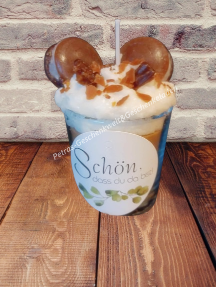 Sie suchen nach einen besonderem Gastgeschenk?An einen Blumestrauß haben Sie eigentlich nicht gedacht?Mit dieser Kerze im Glas Cappuccino, mit ""Sahne Effekt in einer Geschenkbox verpackt,haben Sie sicherlich das richtige Auswahl gefunden.Als kleines Dankeschön Geschenk für eine Tischdeko immer Willkommen