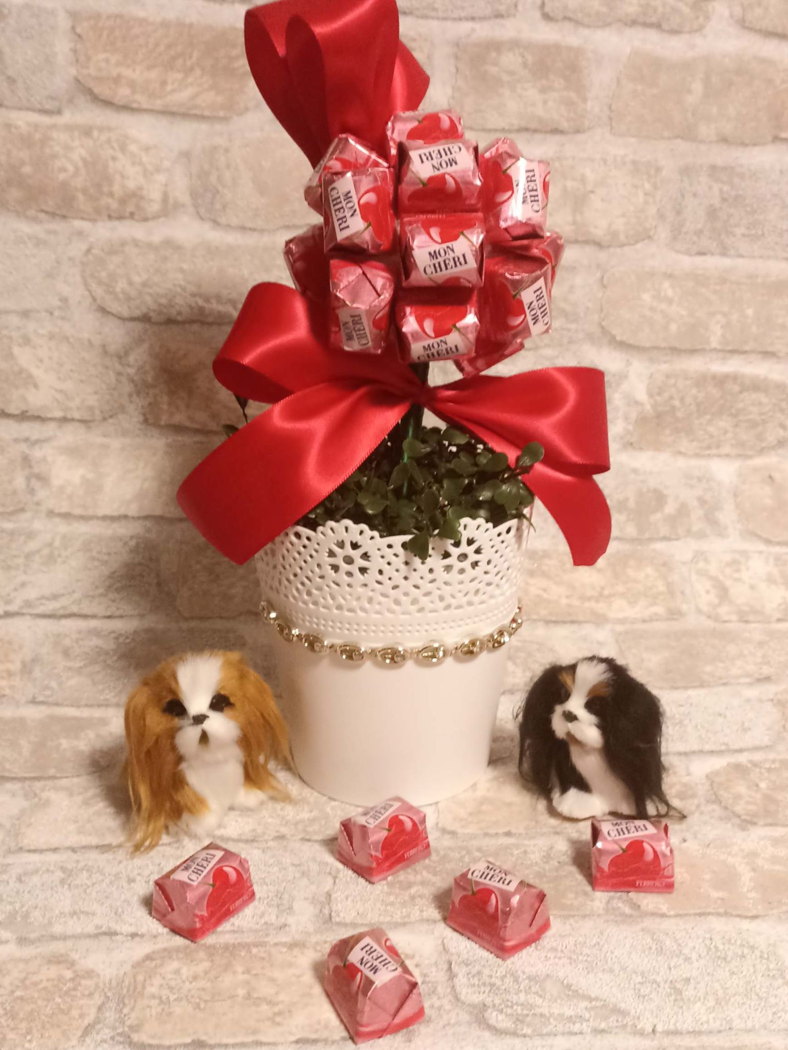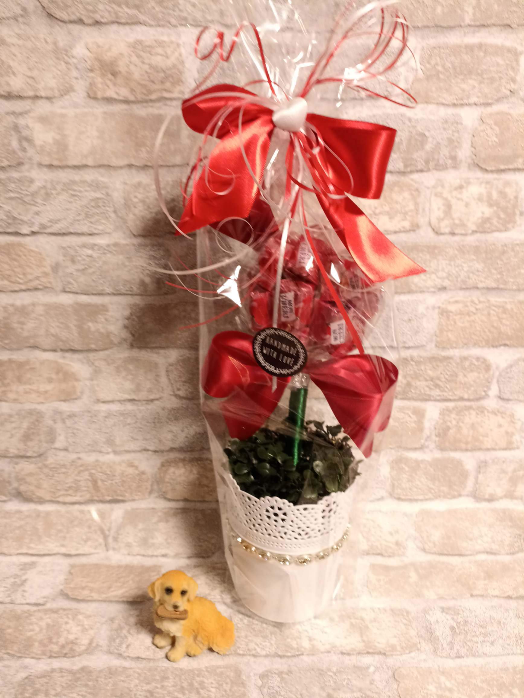 Sie haben noch kein passendes Geschenk gefunden? Sind Sie auf der Suche nach einer besonderen Geschenkidee zum Muttertg? Bei petras-geschenkwelt finden Sie viele schöne tolle Ideen zum verschenken für viele Anlässe.Dieser besonders schöne Baum ist bestückt 20 Ferr.Küss. Pralinen,und läd zum vernaschen ein.Er ist fest verbunden mit dem Blumentopf,und hat eine Höhe von 34 cm.