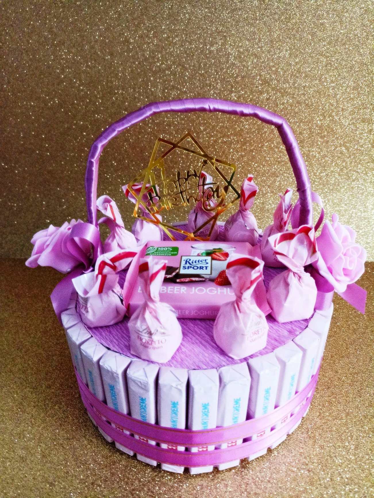 Überraschen Sie mit diese, Pralinen Geschenkkorb,und sagen Sie zu einem Netten Menschen Happy Birthday.Mit viel Liebe zum Detail Handgefertigte Süssigkeiten Geschenkkorb für Teenager und Erwachsene eine Geschenkideen für viele Anlässe rund um das Jahr.Dieser Geschenkkorb ist gefüllt mit 9 Pralinen,und rundum mit 33 Erdbeer.Pralinen bestückt,die zum Naschen einladen.
