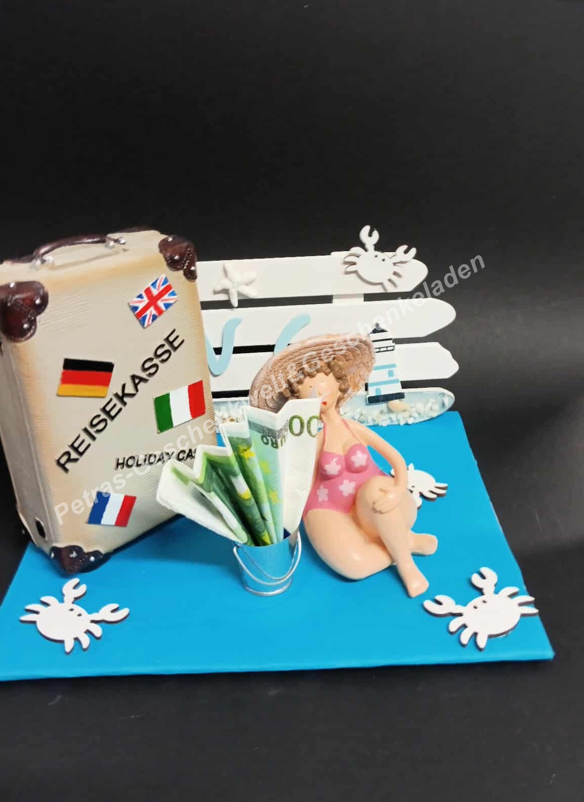 Geschenkidee für einen Gutschein oder als Geldgeschenk für eine Reise ist immer sehr “Willkommen”.Die Geldscheine und Geldstücke sind nicht im Lieferumfang erhalten ,Sie dienen nur als Dekoration Vorschlag in der Kofferspardose
